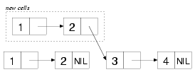 The new list shares some cons cells with the (3 4):